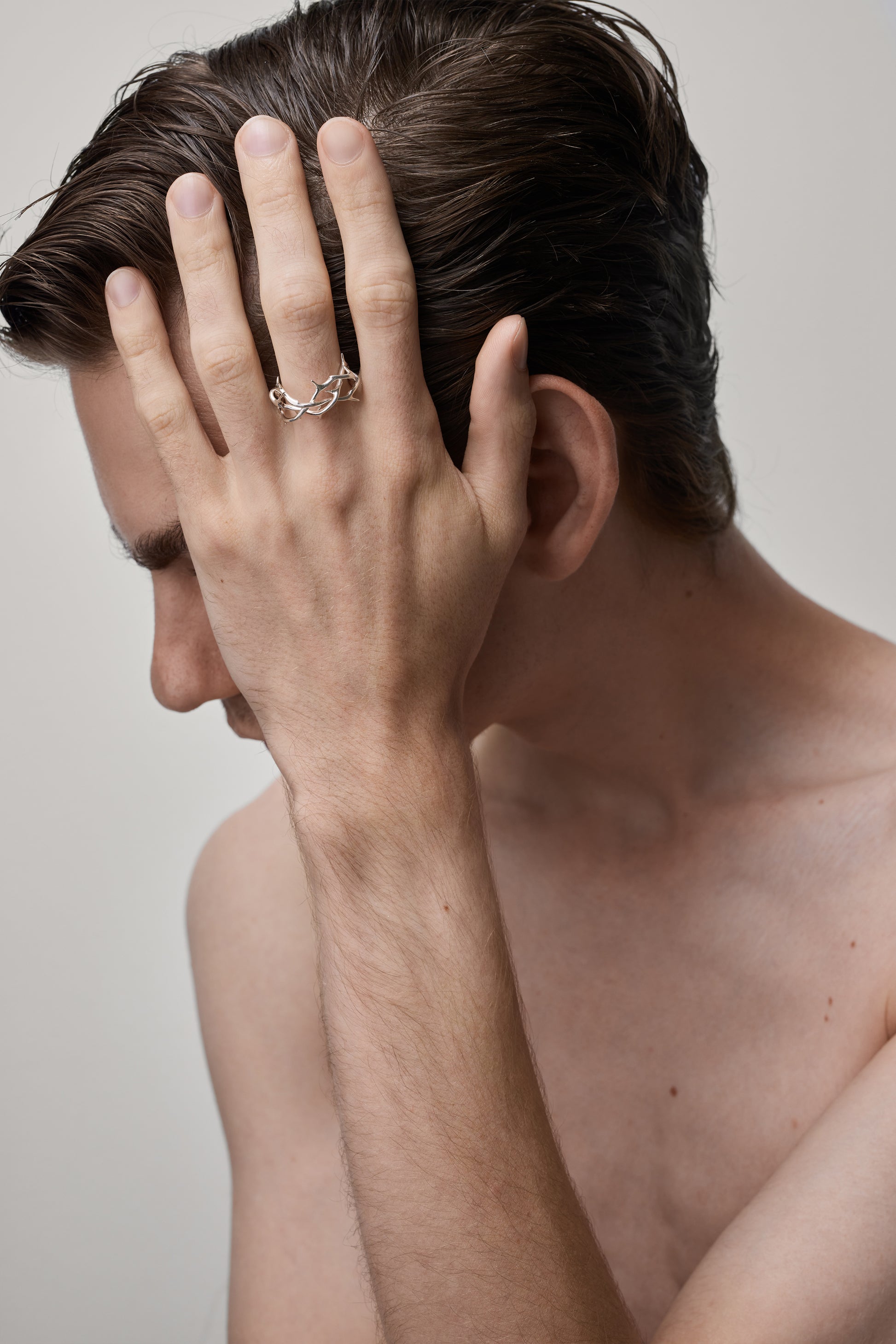 Символ болю, самопожертви, страждання і несправедливості. У цій прикрасі він трансформується в мінімалістичний, але виразний, зручний для носіння каф. Його стримана форма підкреслює силу та витримку, нагадуючи, що навіть у простоті та суворості є глибока краса й універсальність.