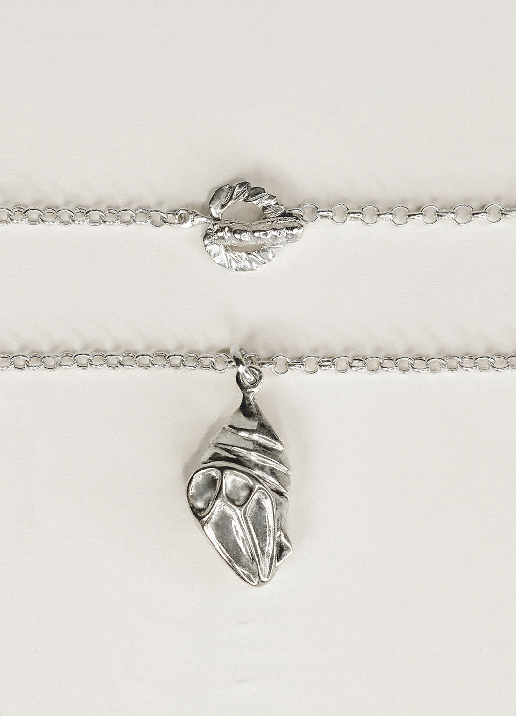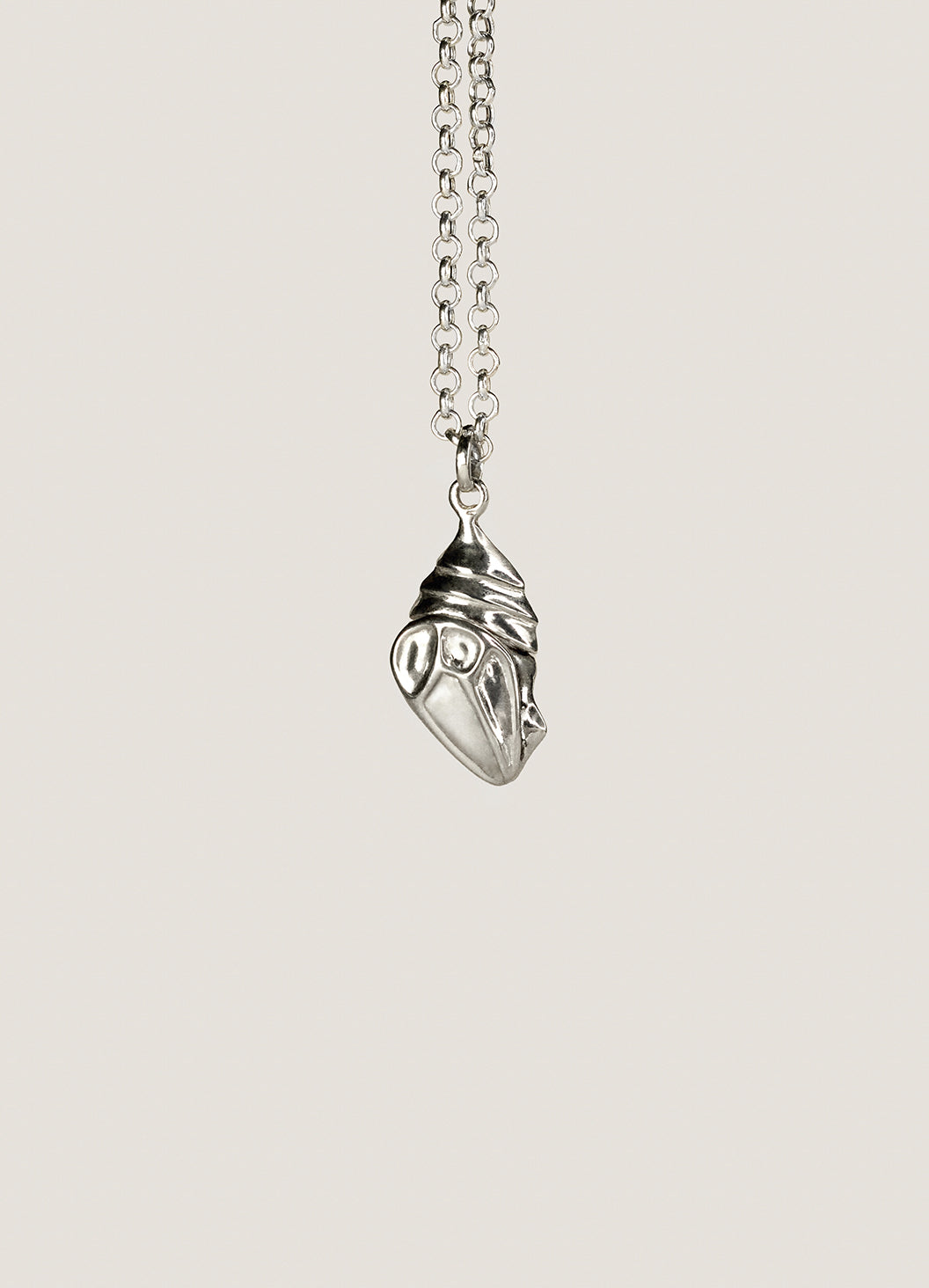 Ми живемо в очікуванні метелика, ігноруючи магію, яка відбувається до його появи. Лялечка, гусінь, метелик — рівнозначні ланки краси. Кулон ALMOST BUTTERFLY — це про момент перед перевтіленням, коли краса вже є, але її не всі бачать.