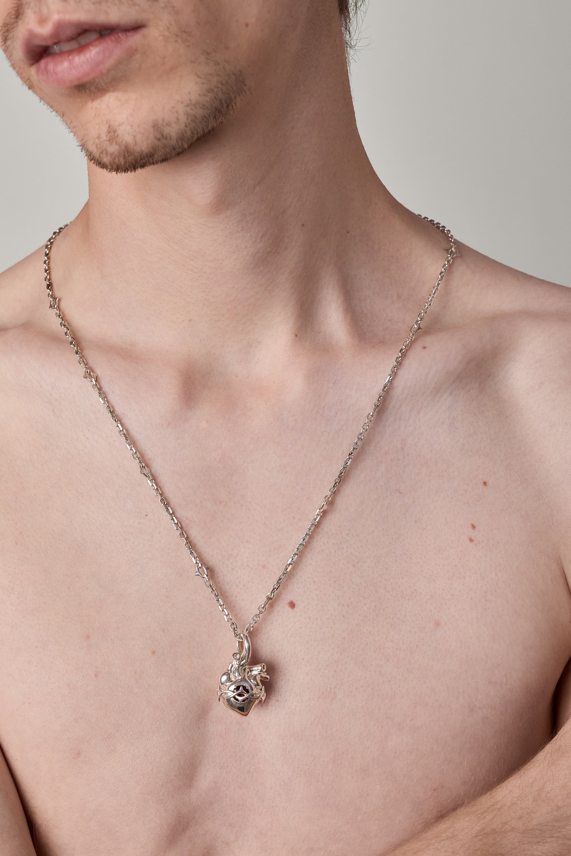 Масивне повнотіле серце на кастомізованому ланцюгу, натуральний гранат.
