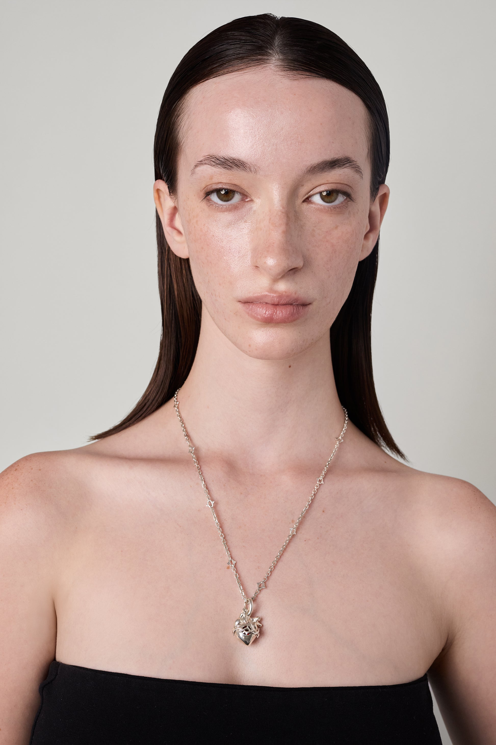 Це серце кожного з нас — страждає від власної гріховності, але водночас продовжує любити. Це алегорія християнського символу Sacred Heart — серця, що горить полум’ям любові й очищення. Поєднання болю, плоті та світла робить його майже тілесною іконою. З червоною серцевиною, у терновому вінку, з кривавими відблисками.